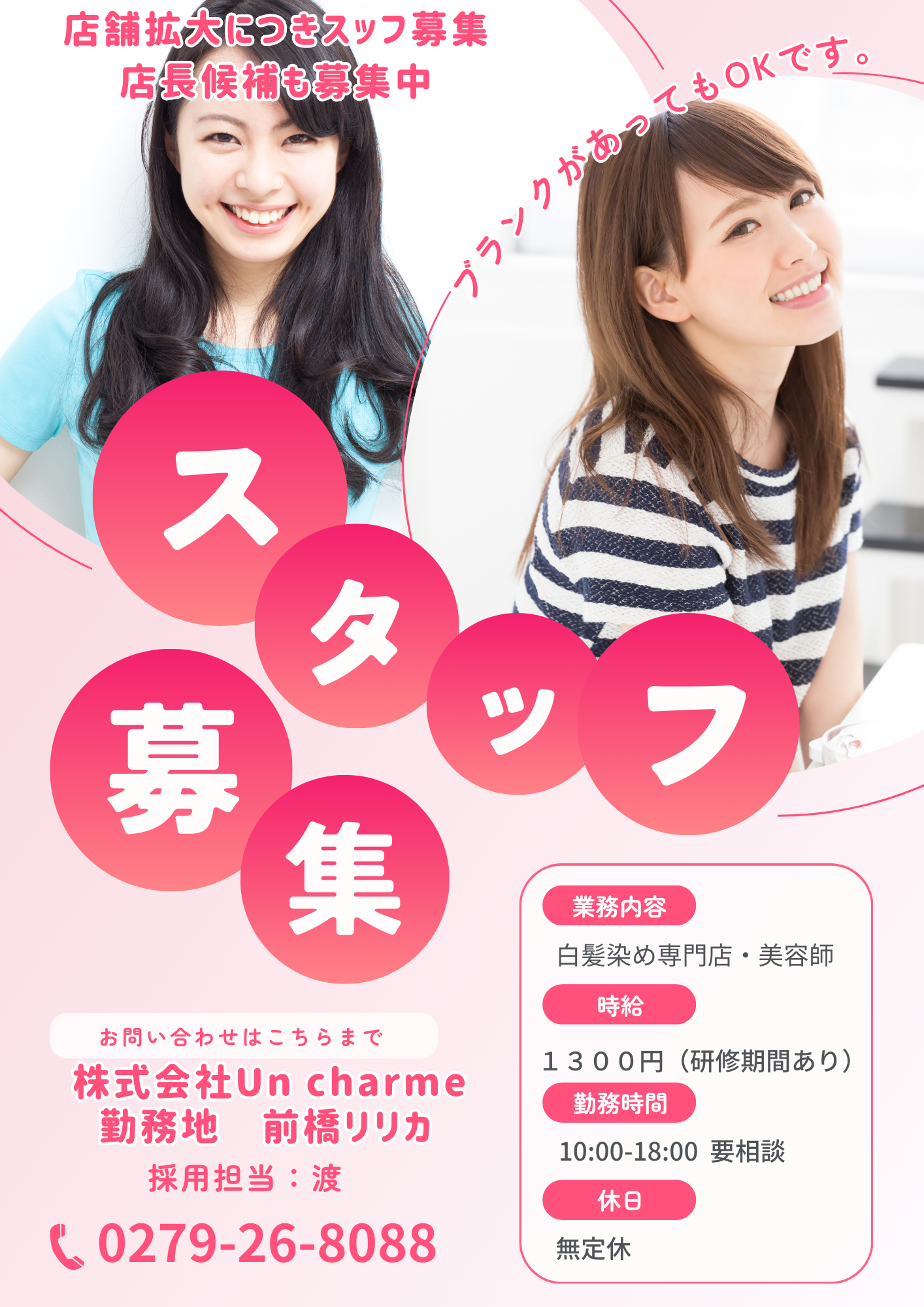 ※今回の募集は美容に関してですが、他業種にも興味がある方はご連絡ください