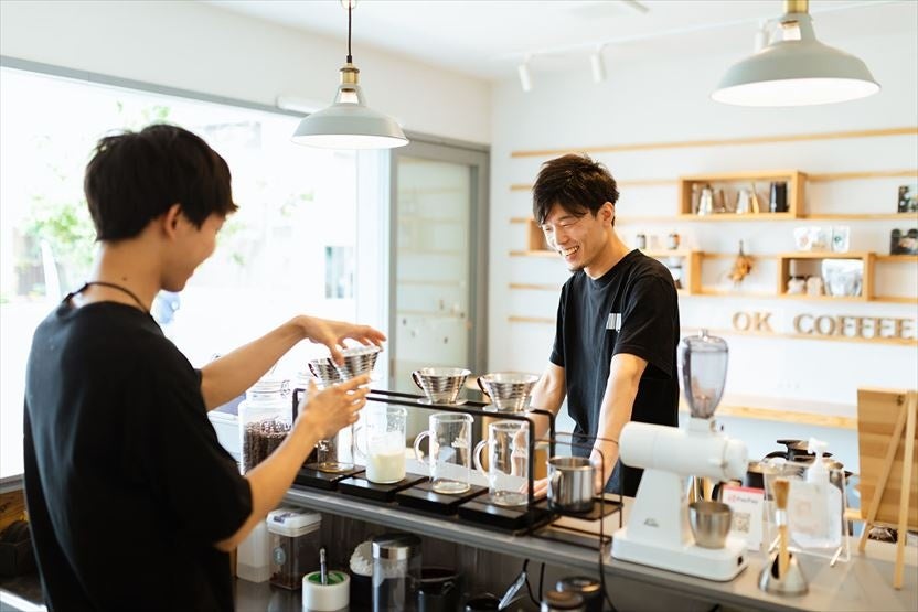 私は吉野ヶ里町に生まれ育ち、2018年に創業80年続く家業を継ぎました。現在も吉野ヶ里町で製造業を営んでおり、祖父より3世代が育ったこの町に恩返しをしたいという想いで作ったお店がOK COFFEE Saga Roasteryです。
