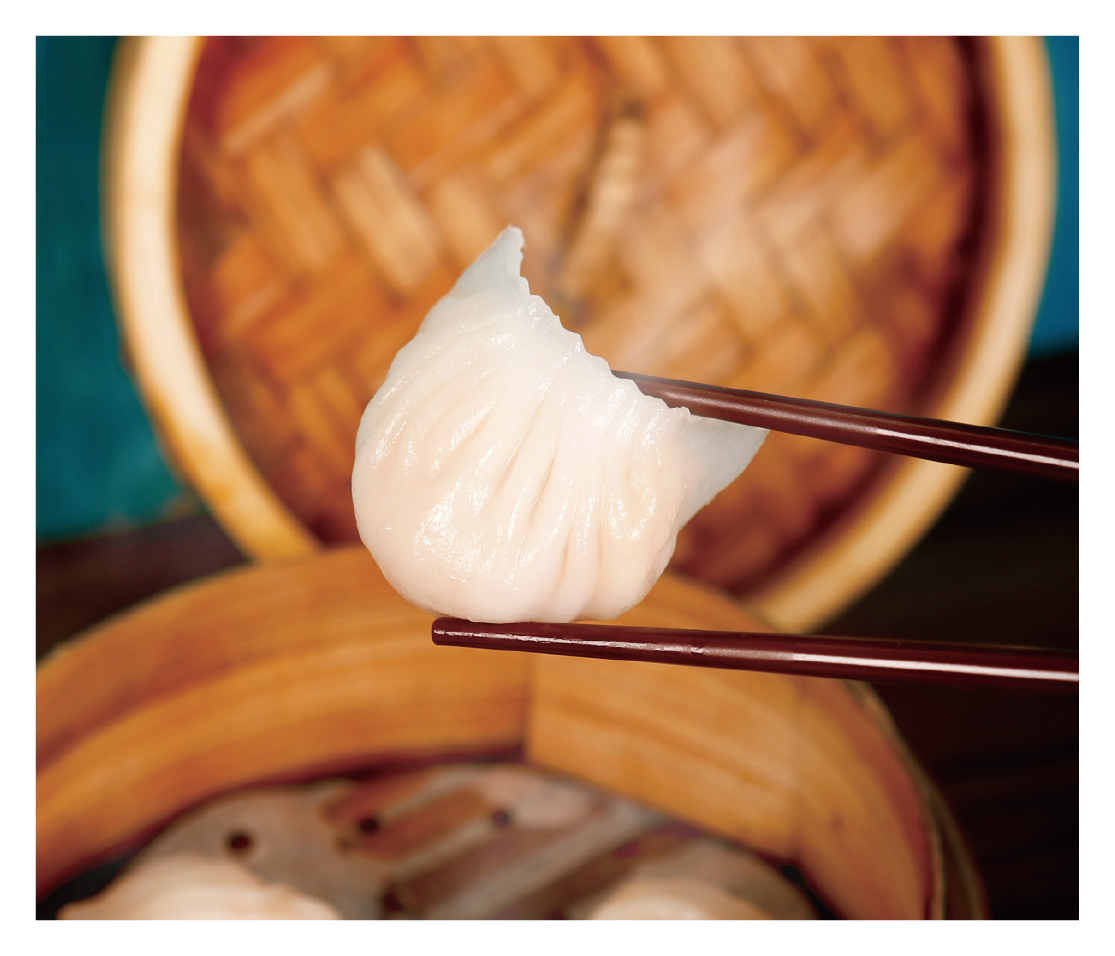 *写真左:当店の看板メニューのひとつ、「海老入り揚げ腸粉」。プルプル、パリパリの食感のコントラストが自慢。