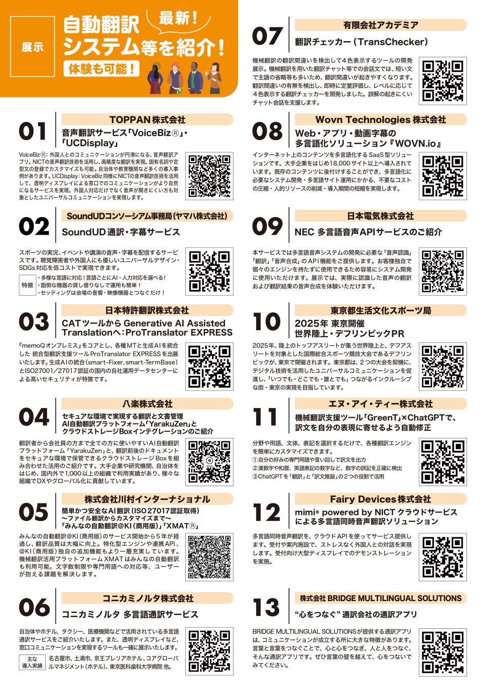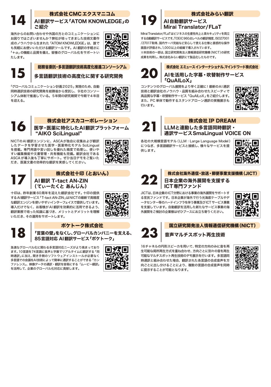 当日は同会場にて、翻訳事業に携わる国内企業・団体(23者)によって、最先端の同時通訳技術の研究開発や最新の製品・サービス等が紹介されました。