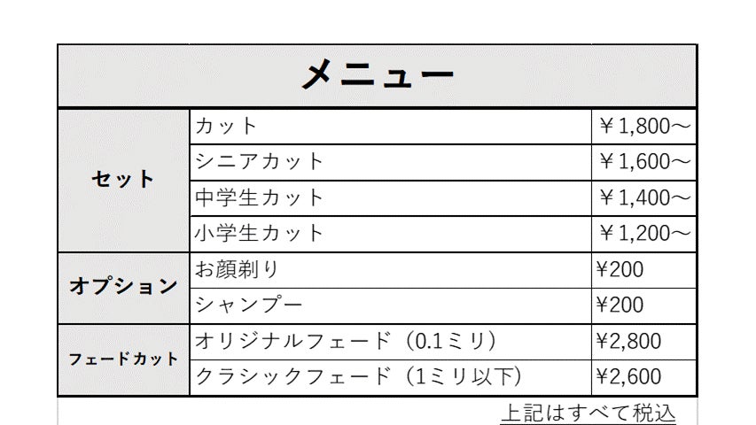 更に、フェードカット(特別価格)も取り入れ、幅広いニーズにお応えします。