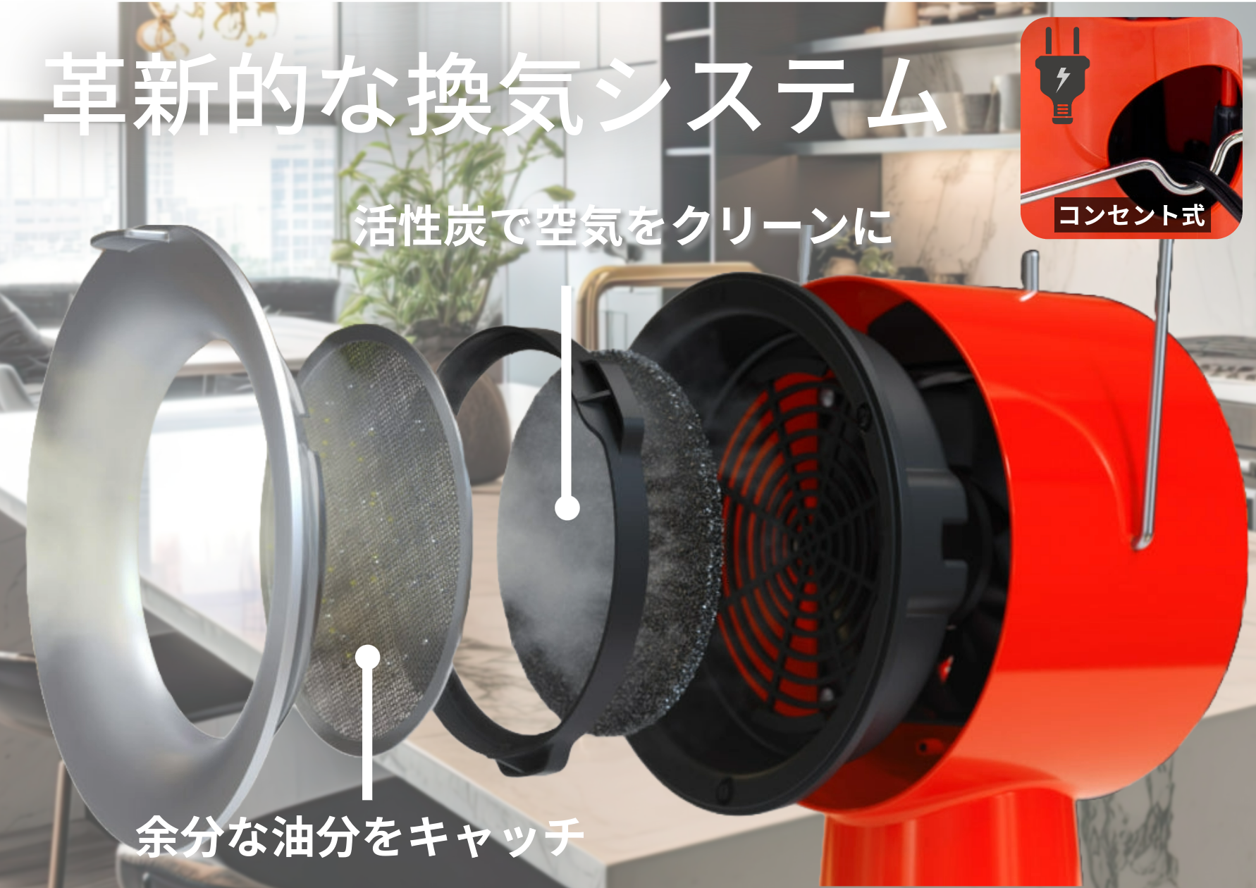 ~持ち運び可能な換気扇~エアフードの店頭販売が遂に開始。換気扇のないリビングやお部屋でのおうち焼肉やたこ焼きパーティーを思いっきり楽しもう!~