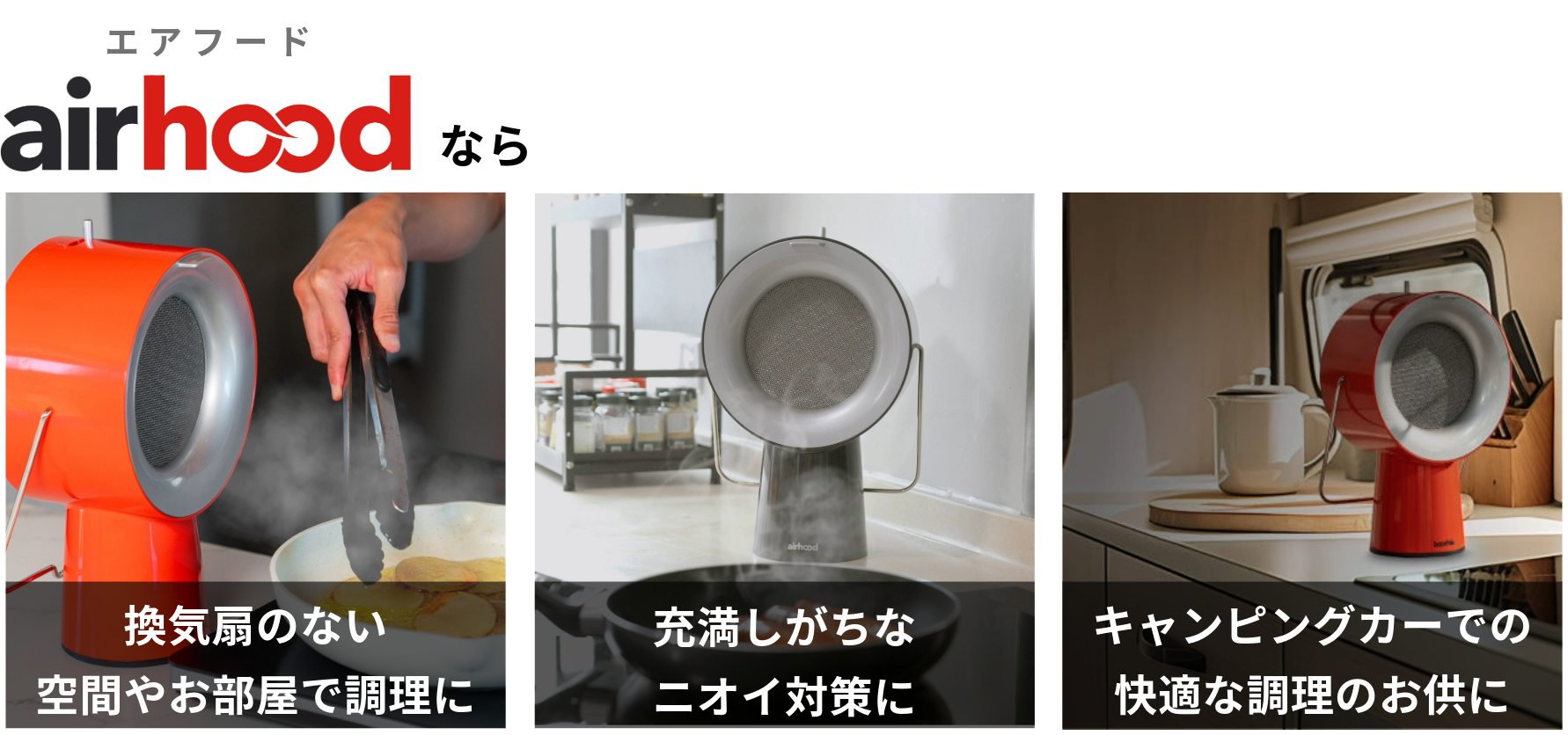 AirHood(エアフード)は世界初のポータブルレンジフードとしてフランス人デザイナーが考案した持ち運びができる換気扇として世界中で販売されています。