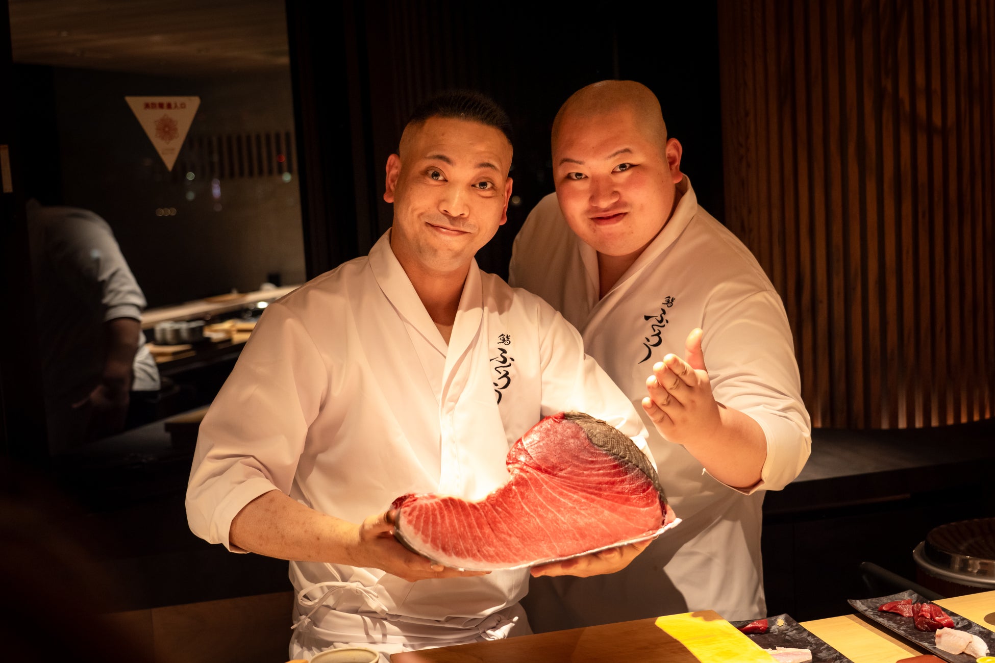 板場に立つのは大将・渡邉嘉樹と板前・山本颯人。銀座の一流店「鮨 銀座おのでら 総本店」でキャリアを積んだ、腕の確かな2人の寿司職人です。
