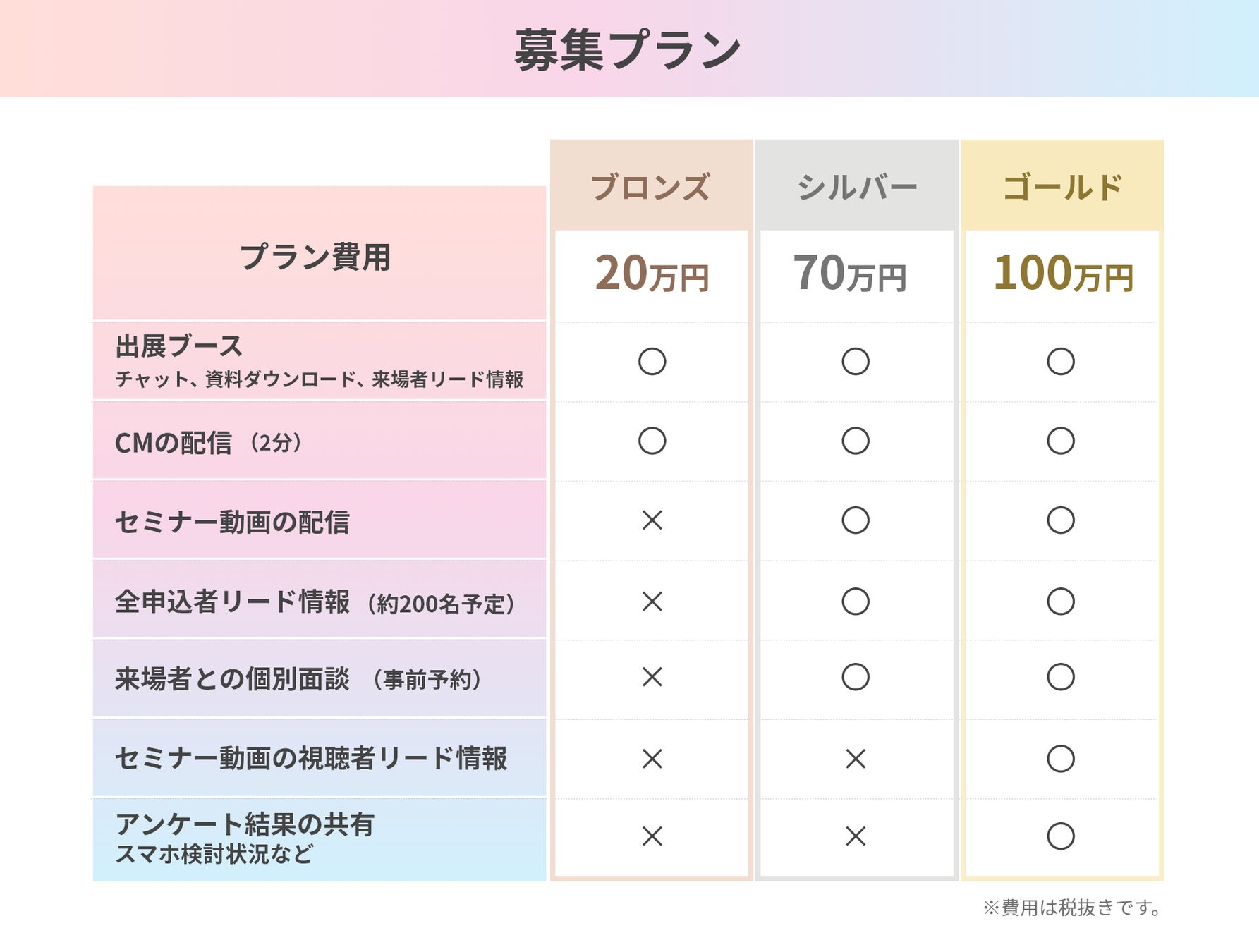 スマホを導入している病院と事業者のペアリングで来場者と個別面談ができる新しい企画もございますので、PRや来場者からサービスのフィードバックを得る場としてどうぞご活用ください。