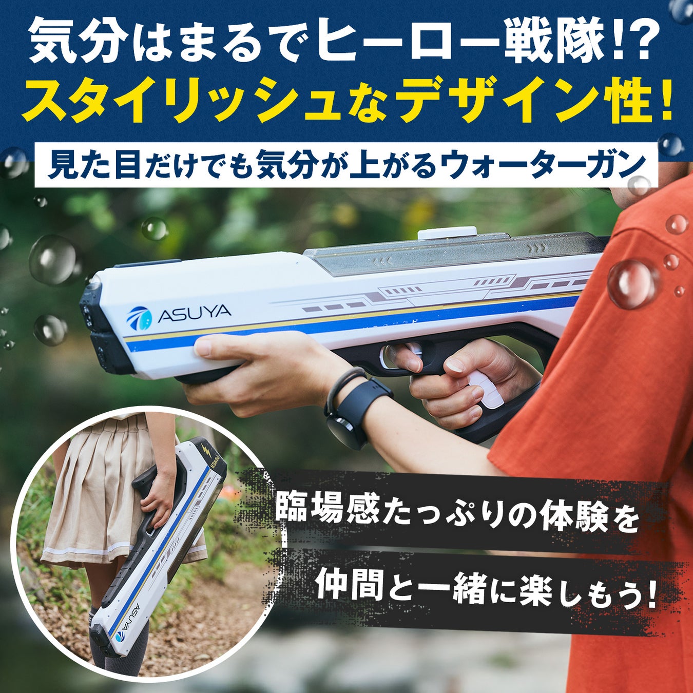 ・ヒーローモチーフデザイン: 子どもも大人も楽しめる、カッコいいヒーローデザインを採用しています。見た目も楽しい特別なウォーターガンで、家族や友達と一緒にヒーローごっこを楽しみ、想像力を膨らませましょう。