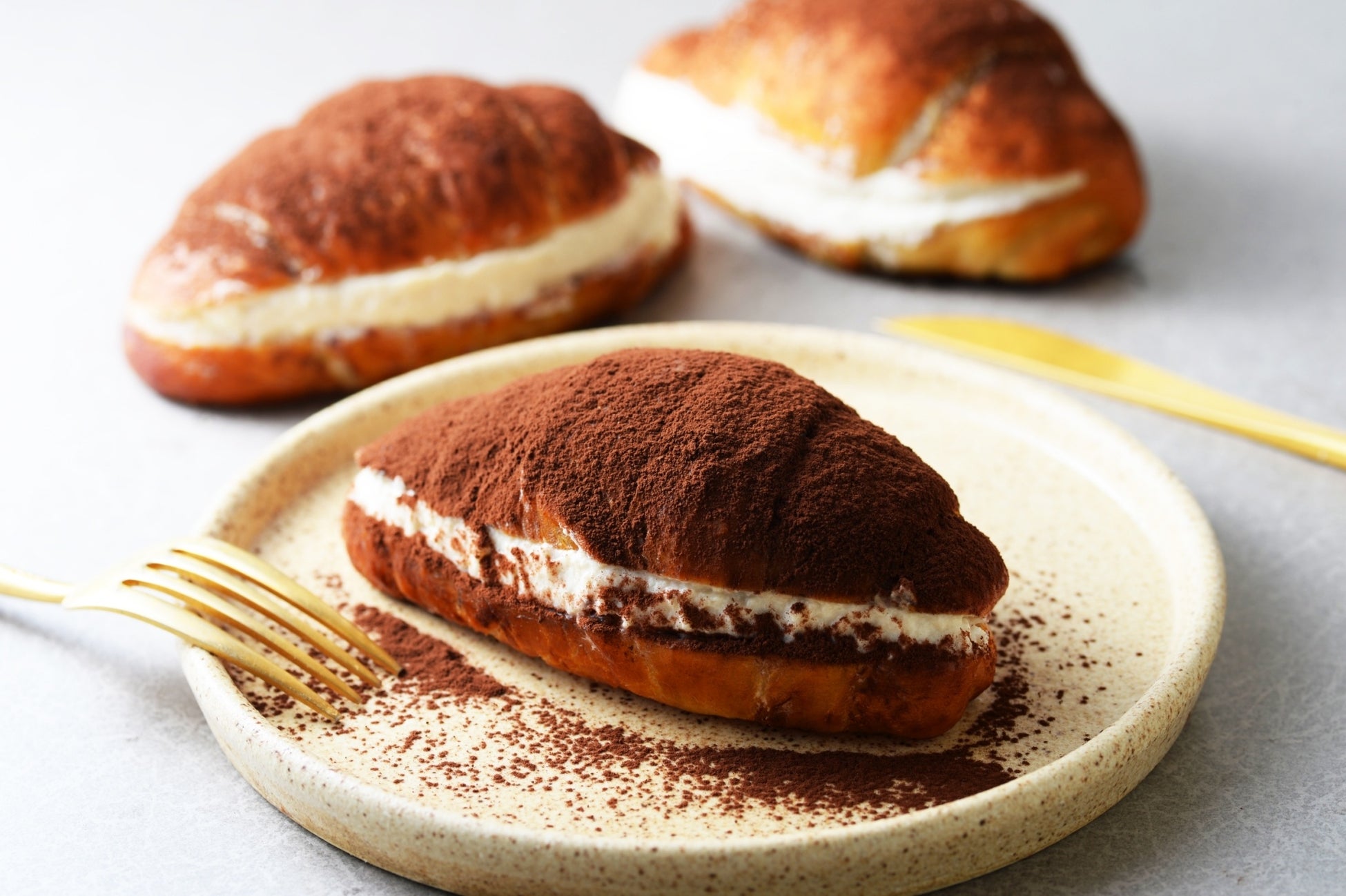 北海道産生クリーム100%のホイップクリームにマスカルポーネチーズ、コーヒーパウダーを合わせた自家製のティラミスクリームをサンド
