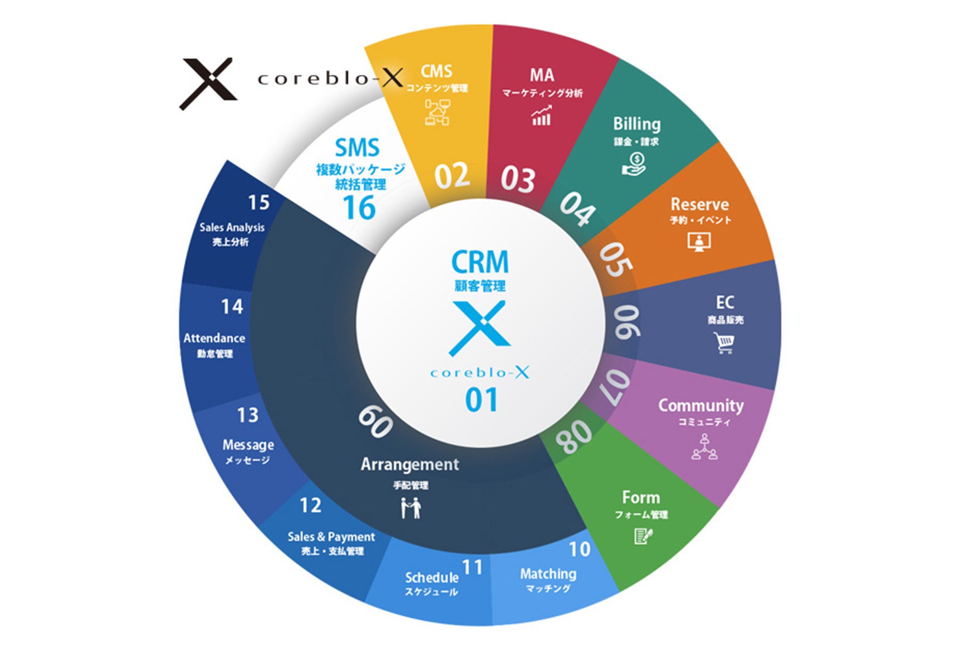 coreblo-Xでは1つのデータベース で連動します。 -