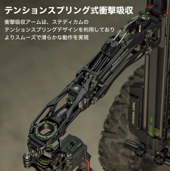カメラアームには、ステディカムのアームテンションスプリング設計を採用しています。