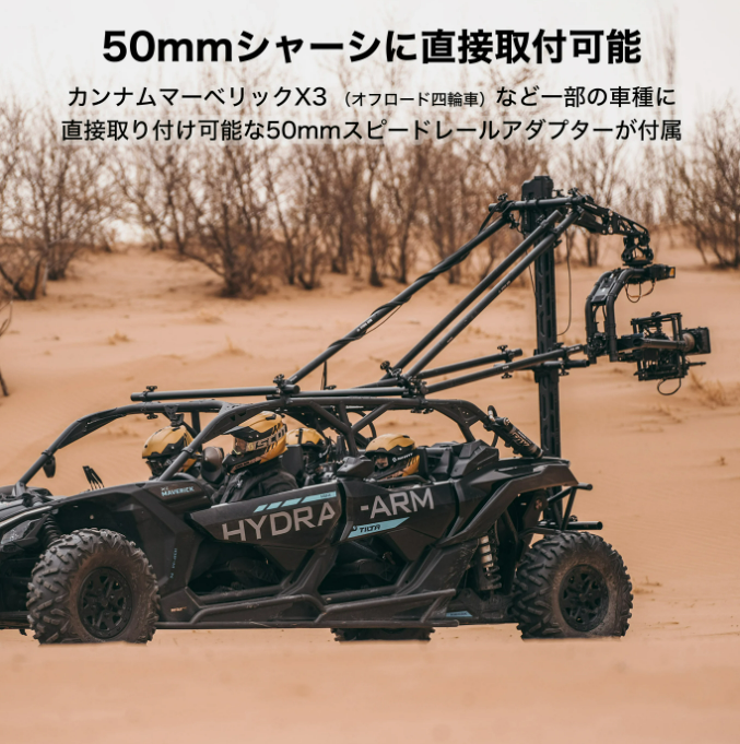 また、衝撃吸収アームの50mmSpeed Railを使用することで、Can-Am Maverick X3 などの特殊車両にスライダーを取り付けることもできます。
