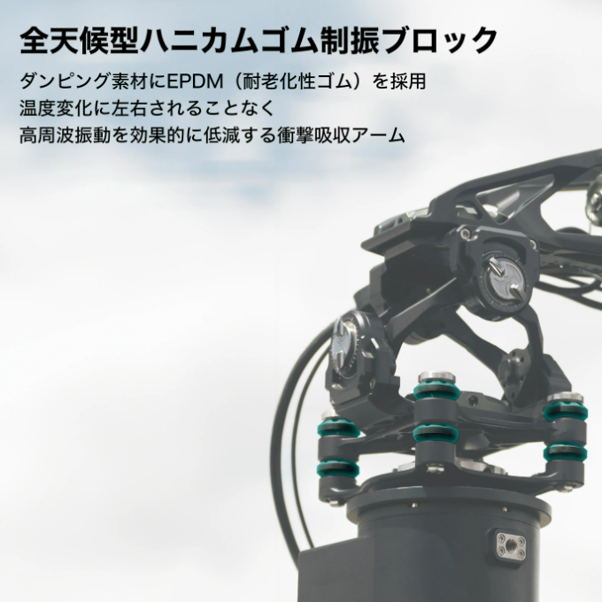カメラアームに新開発のハニカムラバー衝撃吸収ブロックを採用し、さまざまなブレや振動を低減してくれます。
