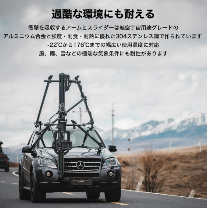 また、Hydra Arm Motorized Slider Systemは温度変化にも影響されず、どんな天候でも安定して撮影することが可能です。