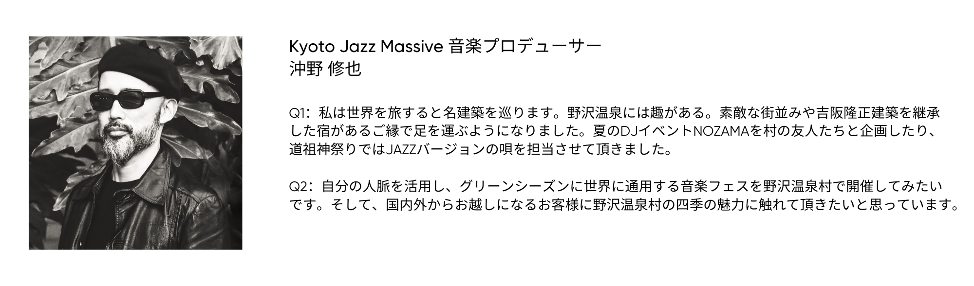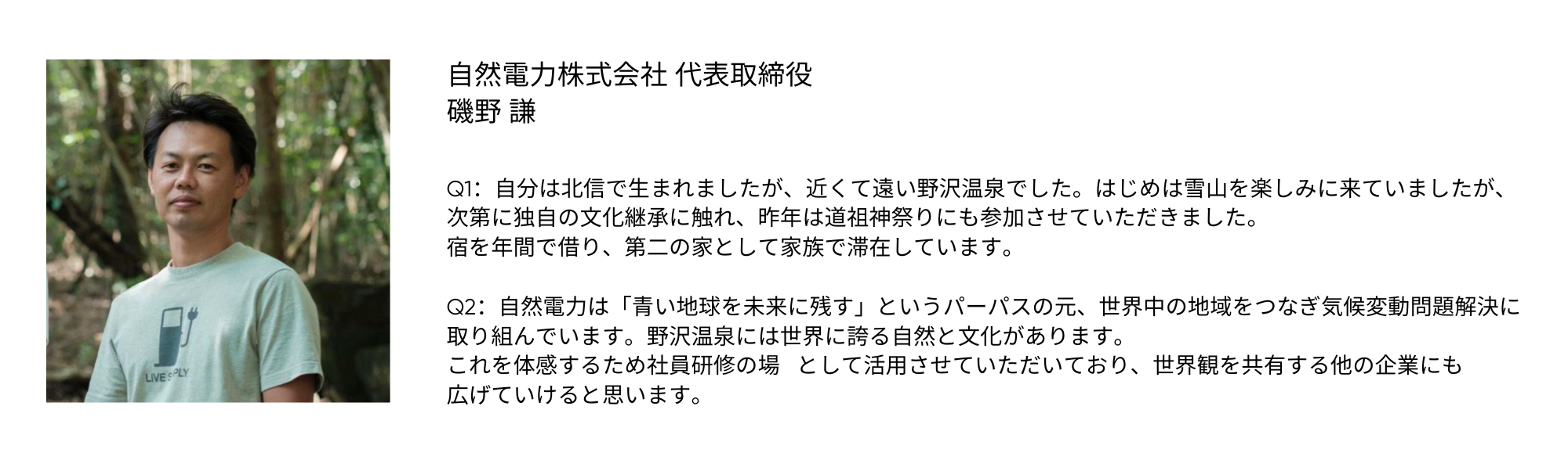 Q1:野沢温泉村の好きなところや行くようになったきっかけは?
