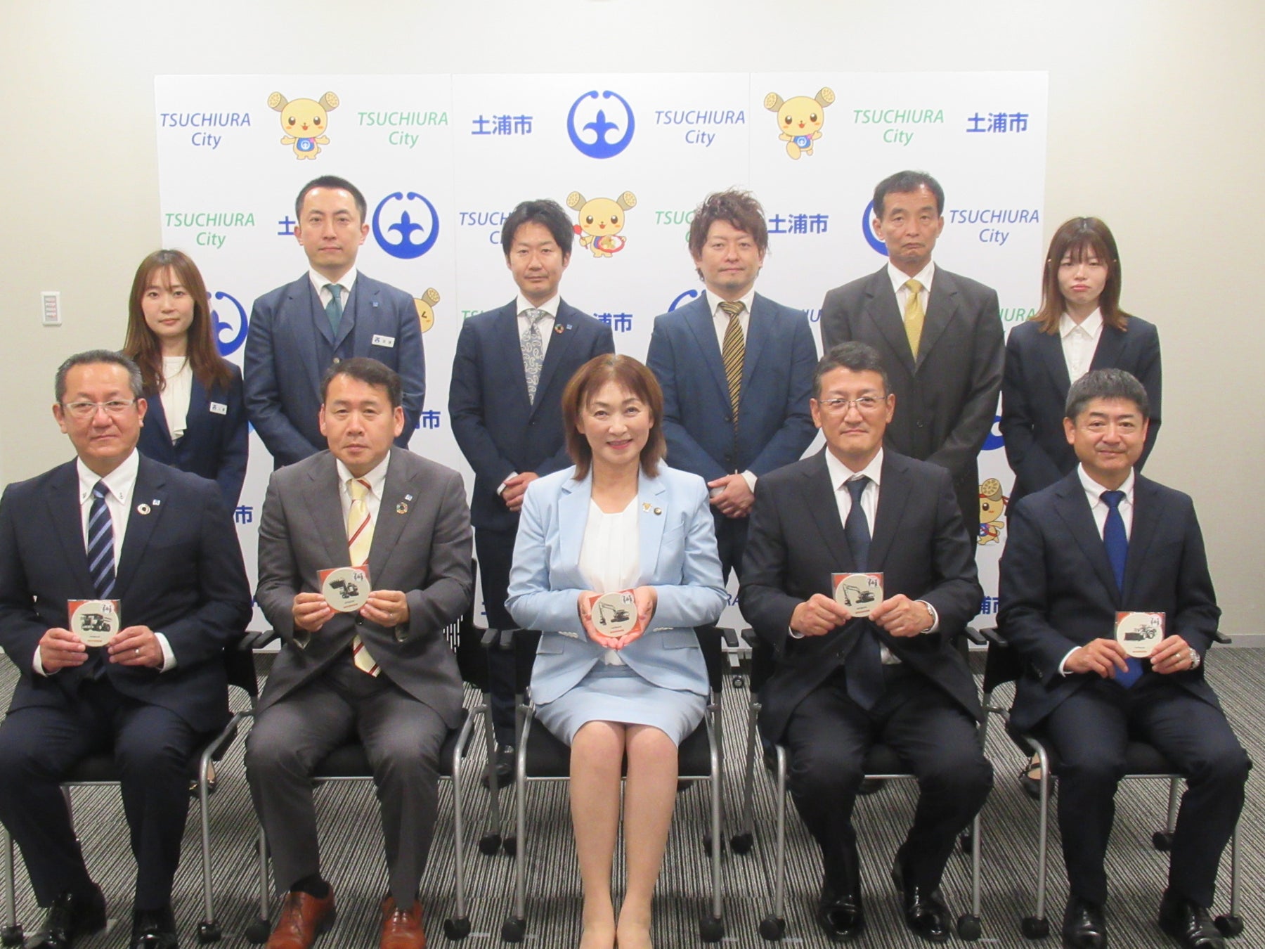 日立建機株式会社の支援活動の功績について、「土浦市共同募金委員会 感謝状贈呈式及び寄付付き商品報告会」(2024年5月30日)が土浦市役所にて行われました。当社も販売協力会社として同席させていただき、導入・販売経緯を報告いたしました。