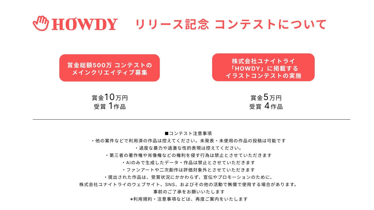 HOWDYリリース後、「500万円のクリエイター向けコンテスト」のタイトル・クリエイティブを募集します