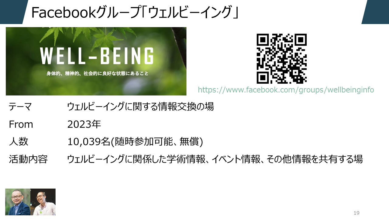 ウェルビーイングに関する情報交換の場として、Facebookグループ「ウェルビーイング」の開設