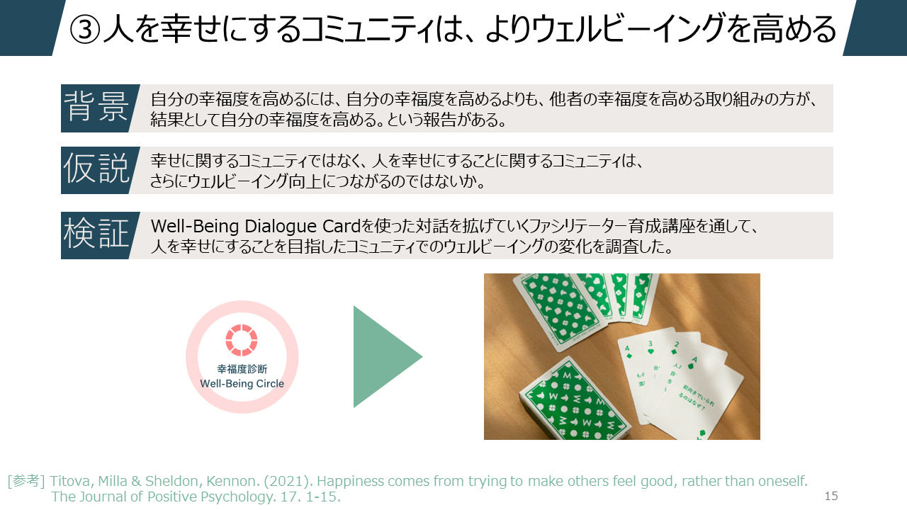対話用カードを用いて、幸せな心の状態を育むコミュニティ