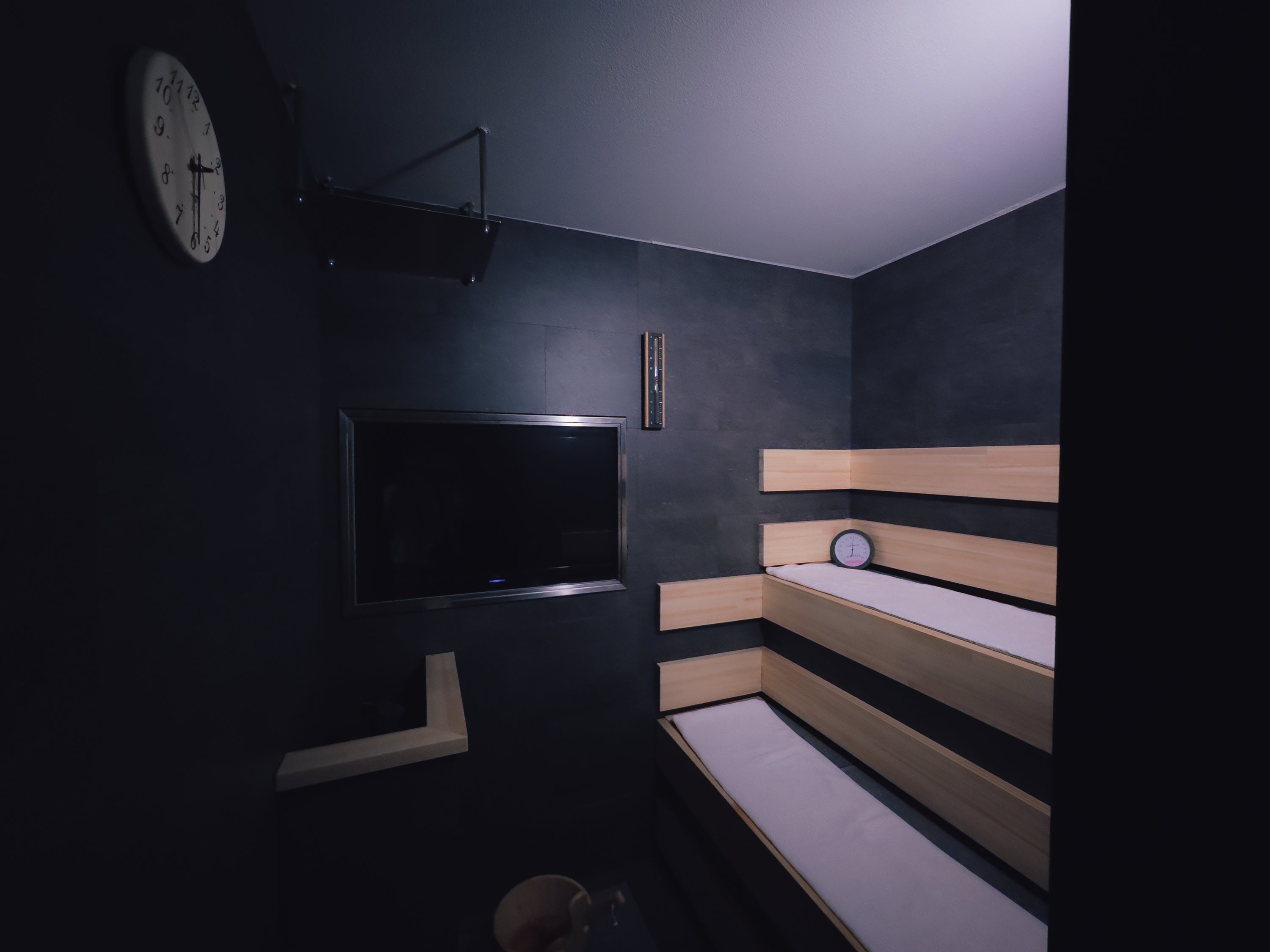 ウォーリュがあり、65℃で驚異的な発汗スピードと発汗量を促します。水風呂には、バイブラを完備。誰にも邪魔されないプライベートスパが完成いたしました。