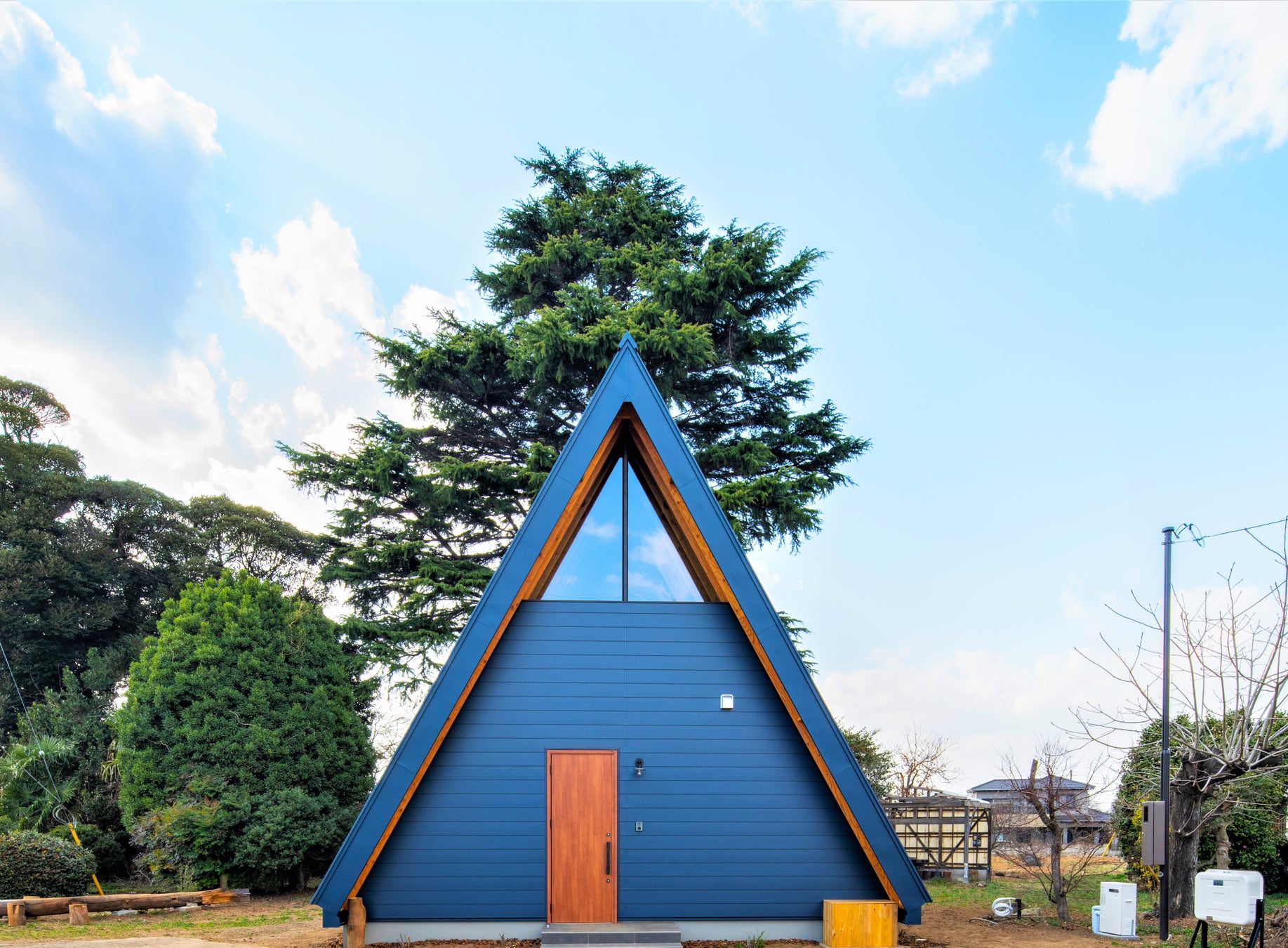 Aフレームとは、屋根と壁が一体になった三角形の構造で、日本ではまだ珍しい建物です。