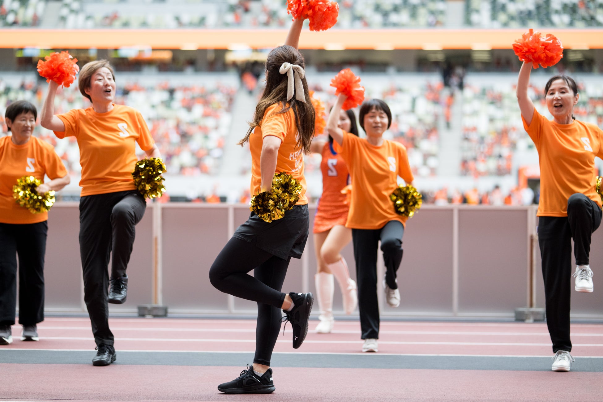 宮城県気仙沼のシニアダンスチーム「NANALA」が、国立競技場でチアダンスを披露