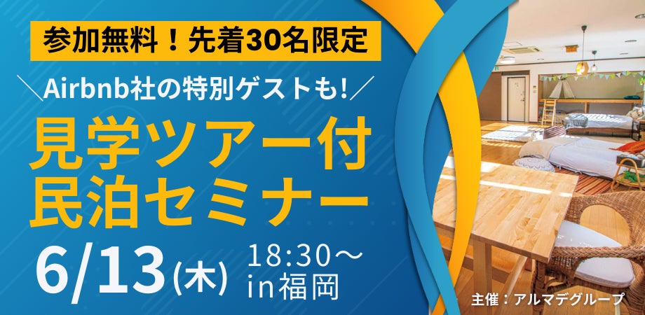 2009年の創業以来、福岡を中心に不動産売買、管理、民泊、建築企画などを手がける総合不動産業アルマデグループ(福岡市博多区御供所町、代表取締役社長:本田 幸一郎 以下当グループ)は2024年6月13日(木)、民泊に関するセミナー兼見学ツアーを開催いたします。