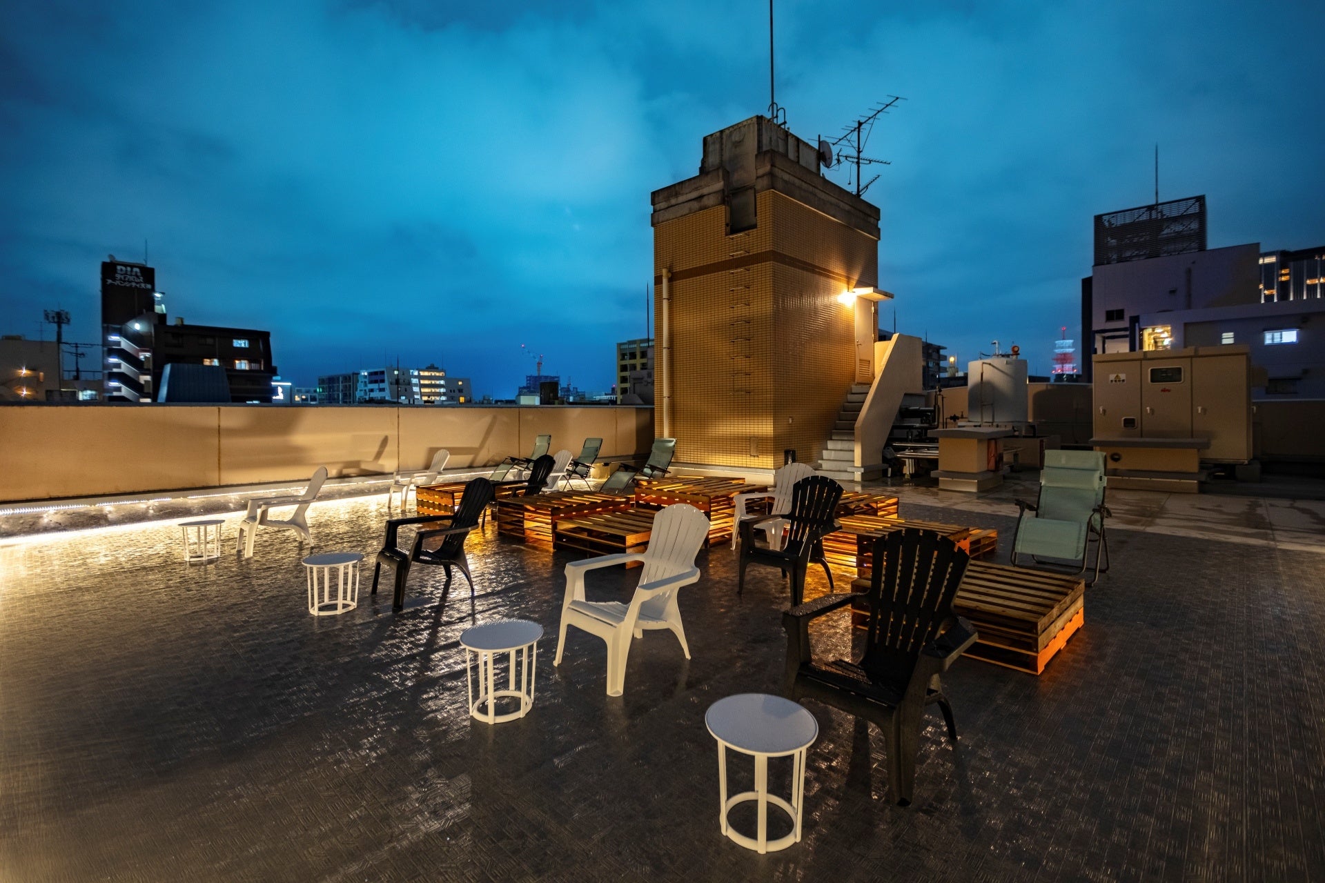 開放感あふれる平和台ホテル天神の屋上に、20脚以上の椅子をご用意。