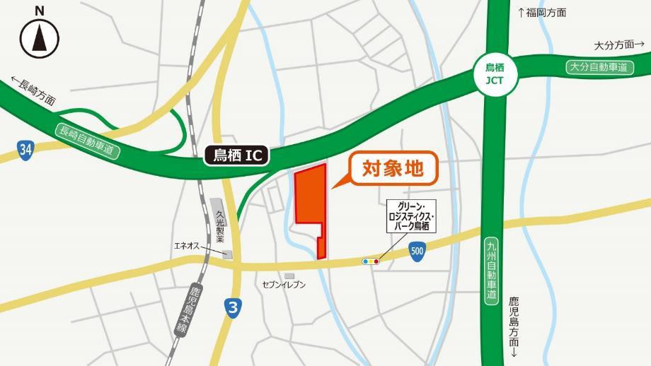 本プロジェクトの対象地は、長崎自動車道「鳥栖インターチェンジ」から約800mに存し、九州自動車道、長崎自動車道、大分自動車道が交差する「鳥栖ジャンクション」に近接しており、九州全域へのアクセスが良好な物流適地に位置しています。