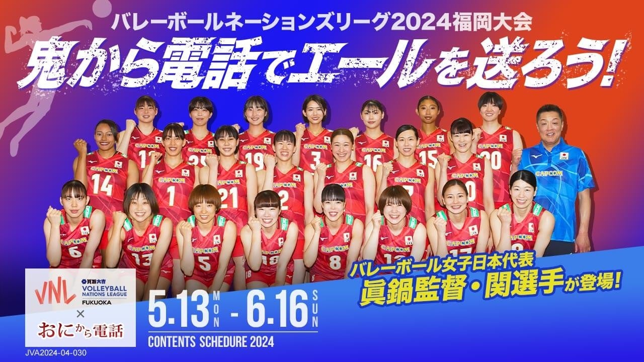 メディアアクティブ株式会社は、子育てサポートアプリ「鬼から電話」にて、公益財団法人日本バレーボール協会とのコラボコンテンツを配信いたします。6月11日から始まるバレーボールネーションズリーグ2024福岡大会に出場される選手の皆様にエールをお送りする企画となっております。今回は、バレーボール女子日本代表の「眞鍋監督」と「関選手」が鬼から電話に登場してくださいました。眞鍋監督からは、オリンピック出場を目指す意気込みのメッセージが届いております。関選手からは、普段は聞くことができないバレーの魅力や大会に懸ける思いを視聴することができます。
