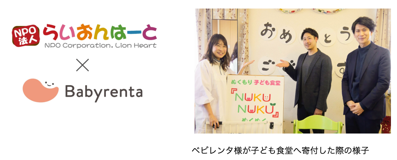 【365日子ども食堂へのベビー用品寄付】ベビー用品レンタル業界大手の「Babyrenta」