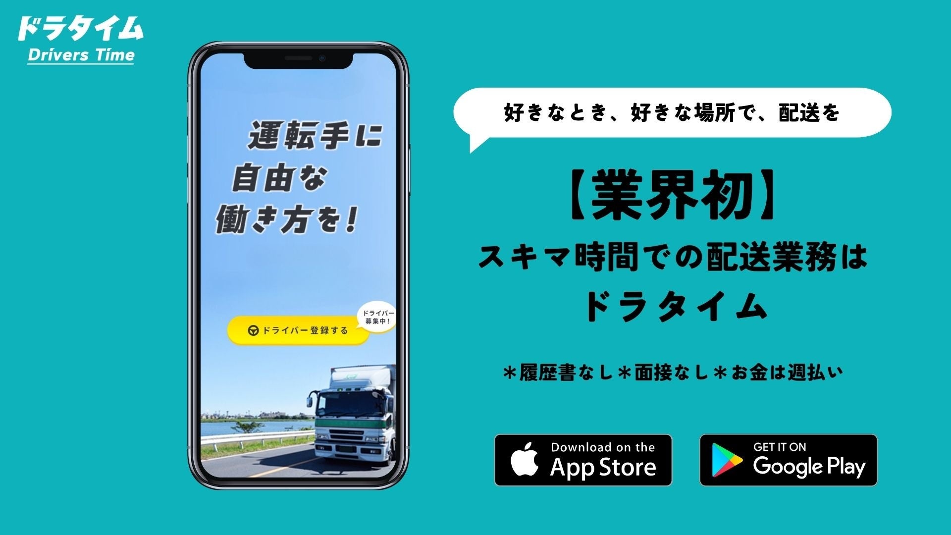 トラックや運転手業務を行うハードルを下げ、老若男女問わず運転職に挑戦したいを手軽にする。新サービス『ドラタイム』好きな時間に好きなだけ高収入な案件が多くあります。