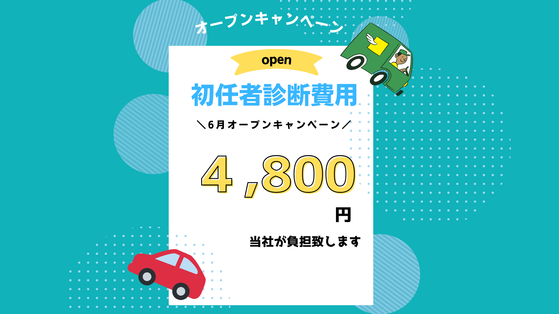 オープンキャンペーンを実施中であり、初任者診断費用を当社が負担致します。詳しくはHPをご確認ください。