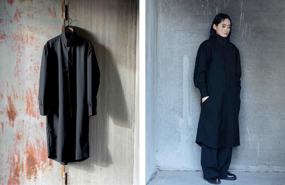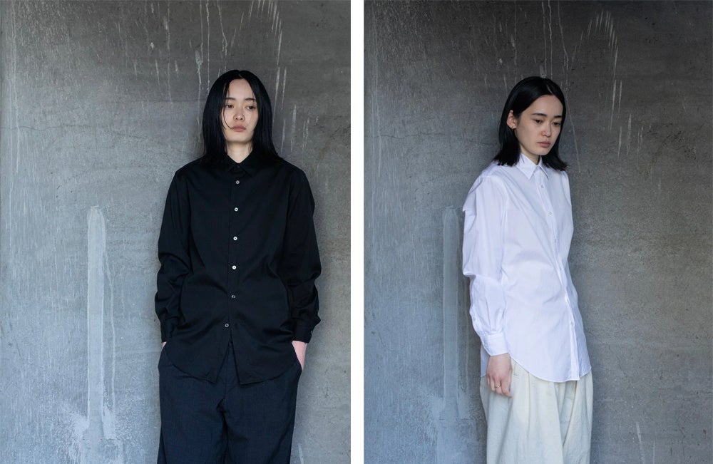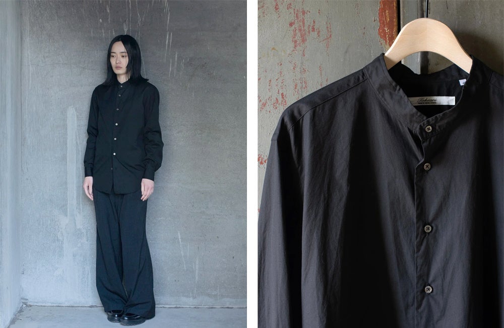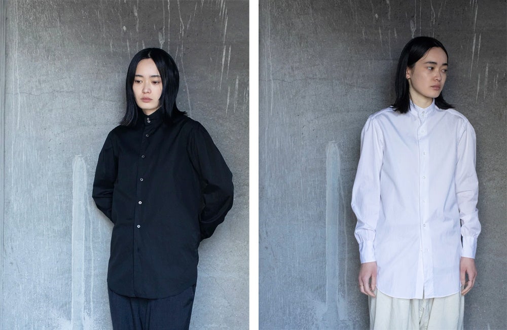 ミニマリズムの気品を追求したこのシャツは、装飾や機能を一切排除したミニマムなスタンドカラーシャツです。第2弾として、ボディをさらにタイトにし、シルエットもさらに削ぎ落としました。究極のミニマリストとして、タックインやタックアウト、どちらも対応可能な着丈に設定しています。