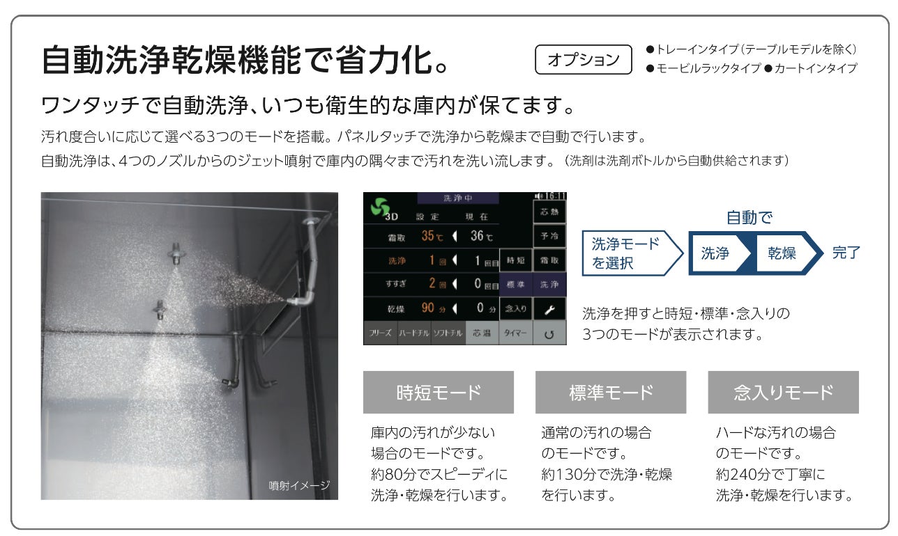 自動洗浄乾燥機能も搭載し、衛生面での安心とメンテナンスの手間を軽減します。