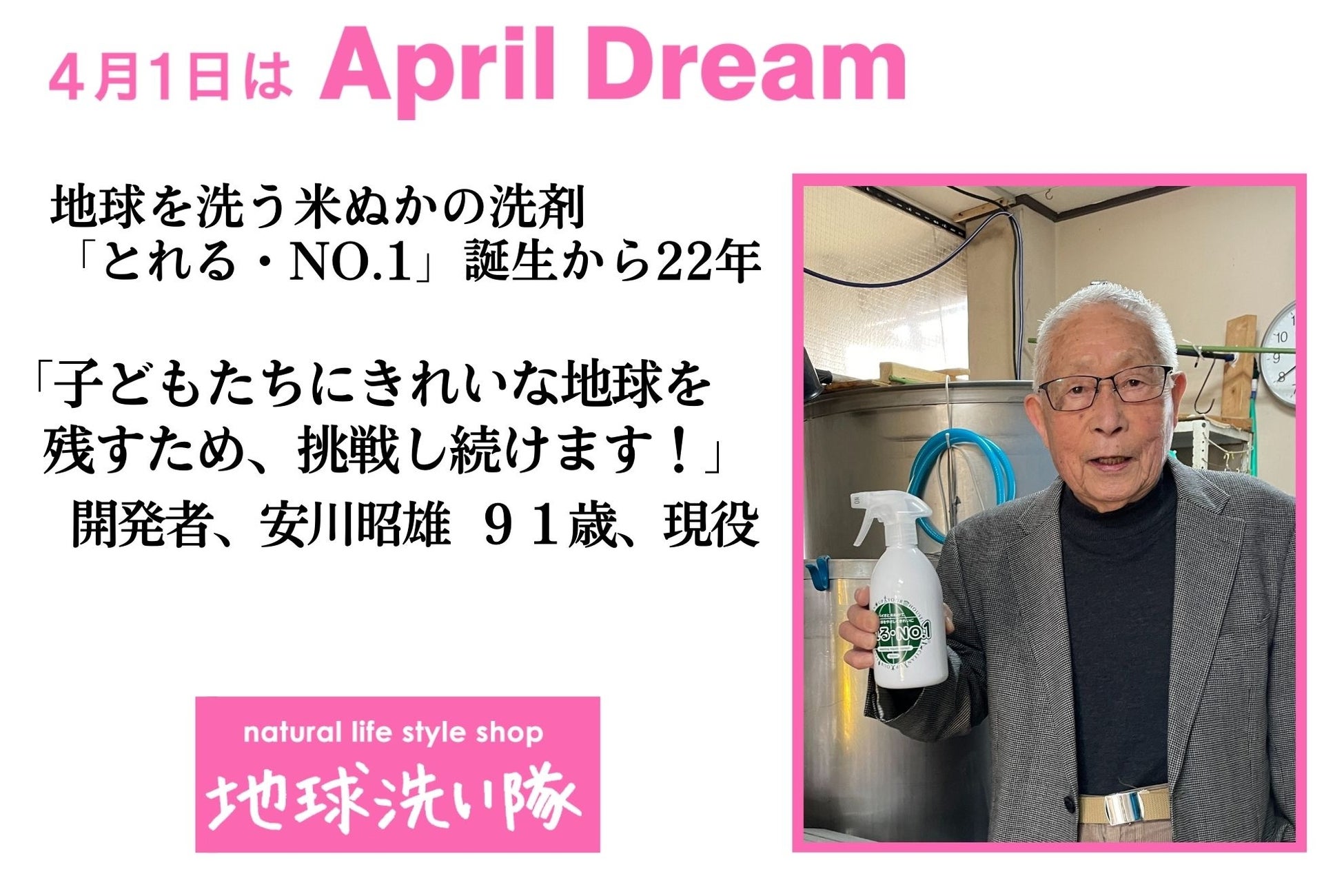 地球を洗う米ぬかの洗剤「とれる・NO.1」は誕生から22年。開発者は91歳、今でも現役。「子どもたちにきれいな地球を残すため、挑戦し続けます!」