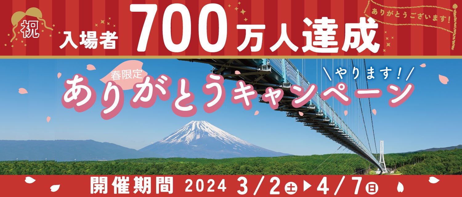 2024年2月27日(火)、三島スカイウォークは入場者700万人を達成することができました。これまでお越しいただいたすべてのお客様、関わってくださっているすべての皆様に心より感謝申し上げます。