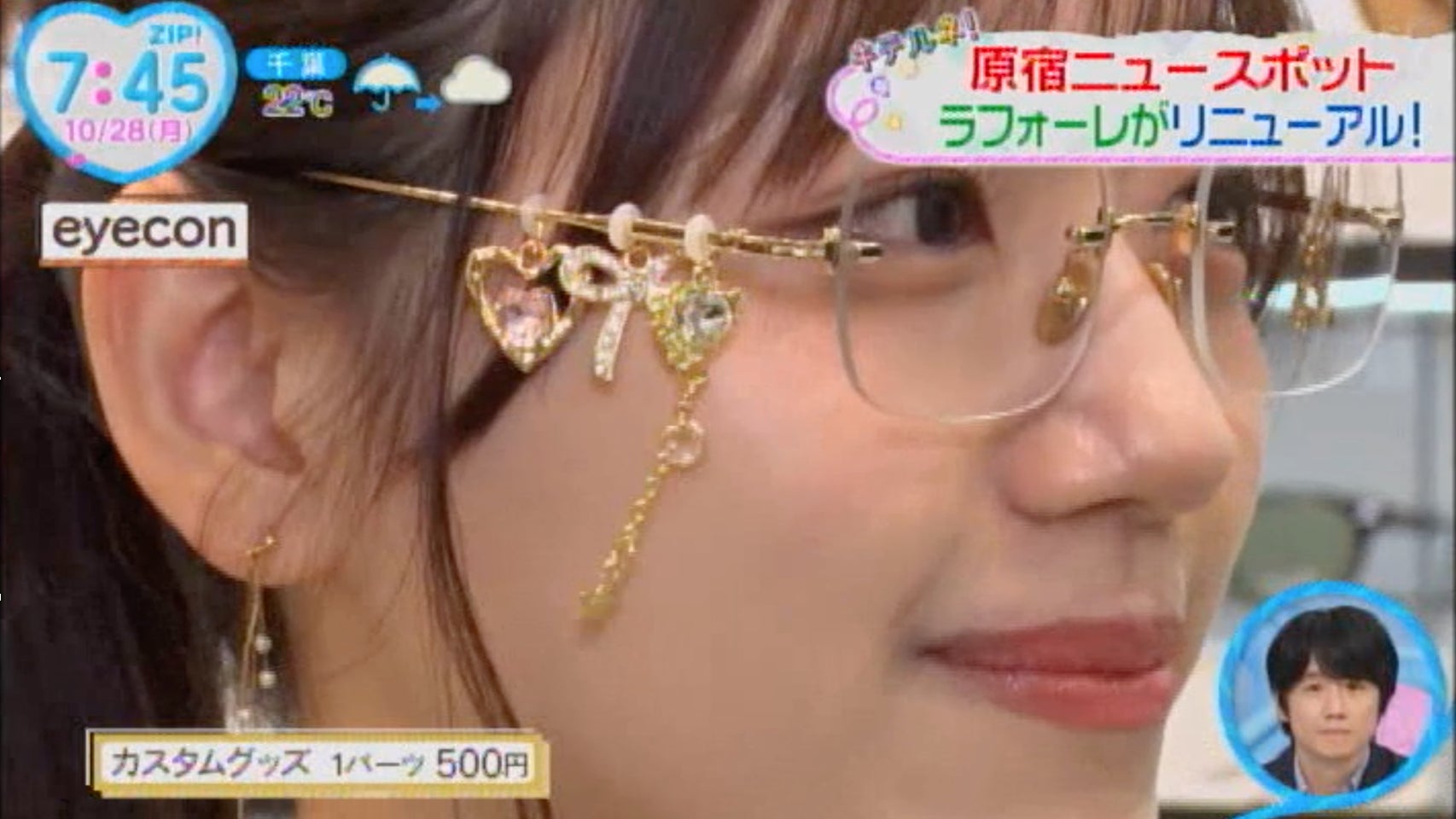 ●日本テレビ系列『ZIP!』にて、eyecon ラフォーレ原宿 1.5F 店が取り上げられ、日向坂46の佐々木美玲さんにカスタムチャームを紹介していただきました!