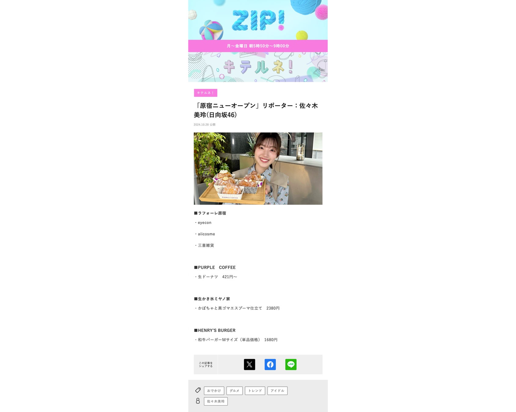 ロケ地は『eyecon ラフォーレ原宿 1.5F 店』リポーターは、日向坂46の佐々木美玲さん。