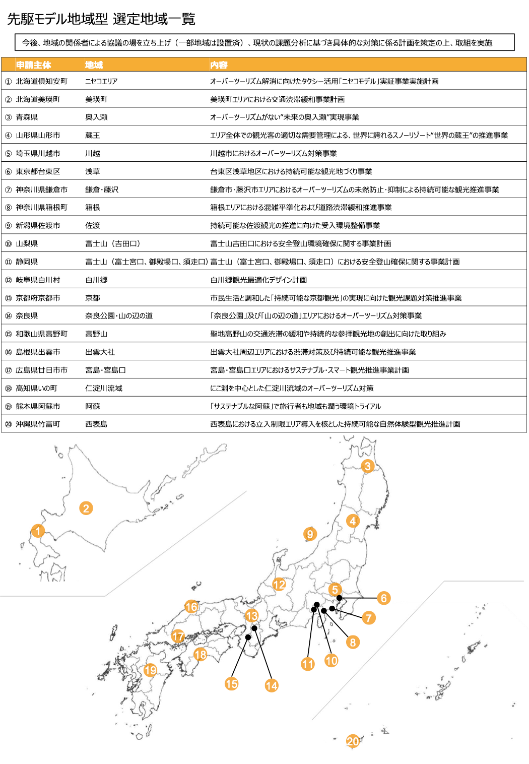 ※①・②ともに、取組の段階においては、地域における受入環境の整備・増強、需要の適切な管理、需要の分散・平準化、マナー違反行為の防止・抑制、地域住民と協働した観光振興の取組を対象とする