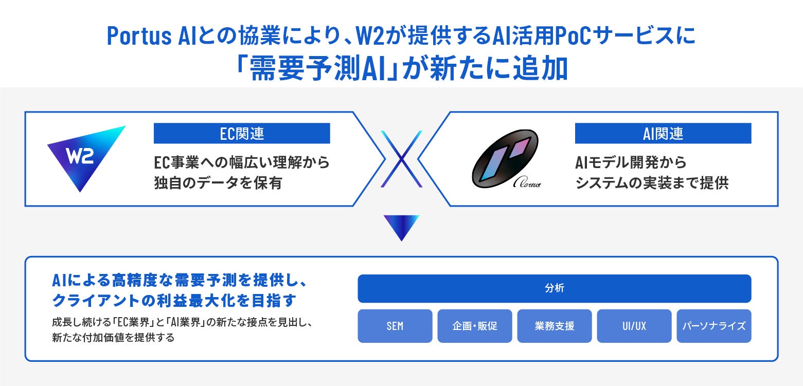 Portus AIと、最先端ECプラットフォームを展開するW2が、AIを活用した需要予測技術の分野で協業を開始!