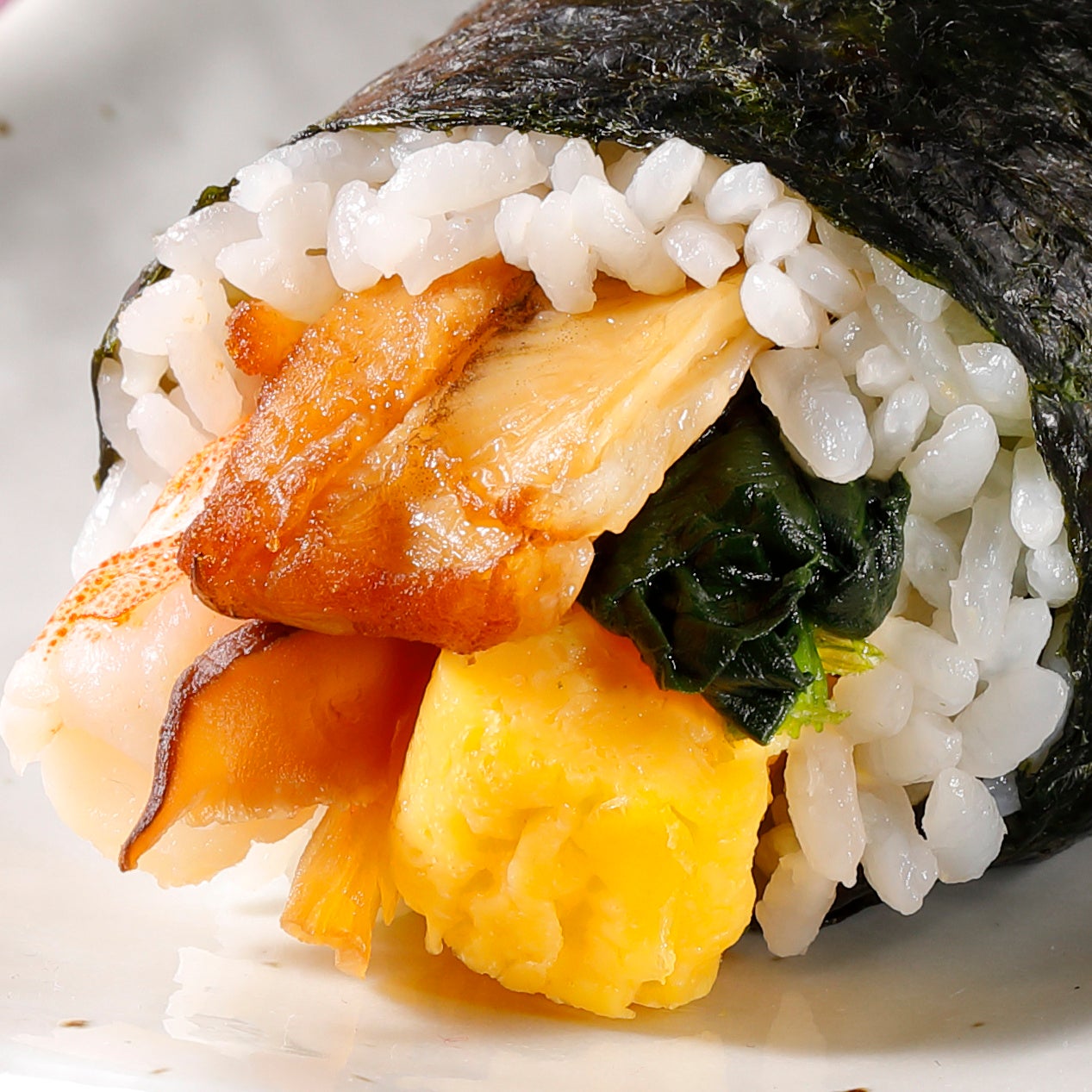 特 長:7種の具材を使用(穴子・ボイルエビ・かんぴょう・青菜・玉子・しいたけ・さくらでんぶ)。煮込穴子は蒸し工程を加えているので、やわらかくふっくらしています。