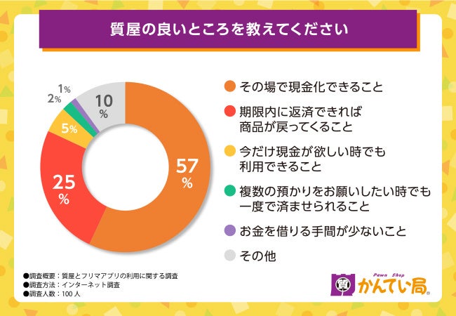 質屋のメリットとして『即金性』や『質預かりの利便性』が高く評価されているとわかります。