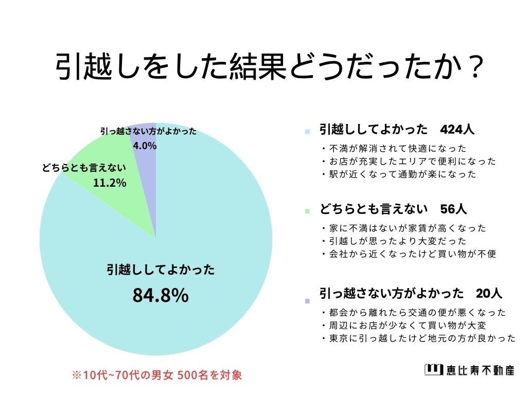 引越した結果ほとんどの人は「引越しして良かった」と感じているようです。