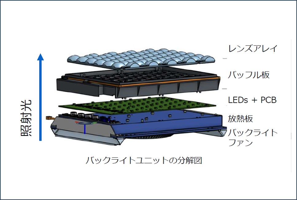 バックライトユニットから放射される光をレイヤーの形状に正確に変形。