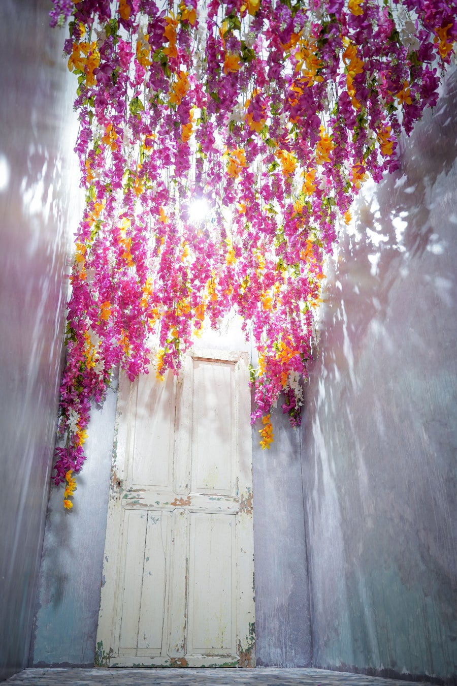 花路地は、カラフルなお花と、それを際立たせる木洩れ日での光の演出が魅力的です。