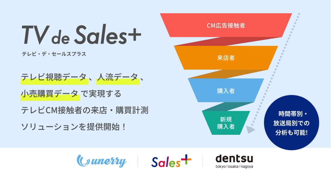 SalesPlusと電通とunerry、テレビCM接触者の来店/購買を計測・分析しメディアプランニングをサポートする「TV de Sales+」の提供を開始