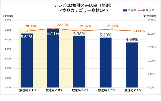 分析②:テレビCM接触曜日・時間帯別の来店率、放送局別の来店率