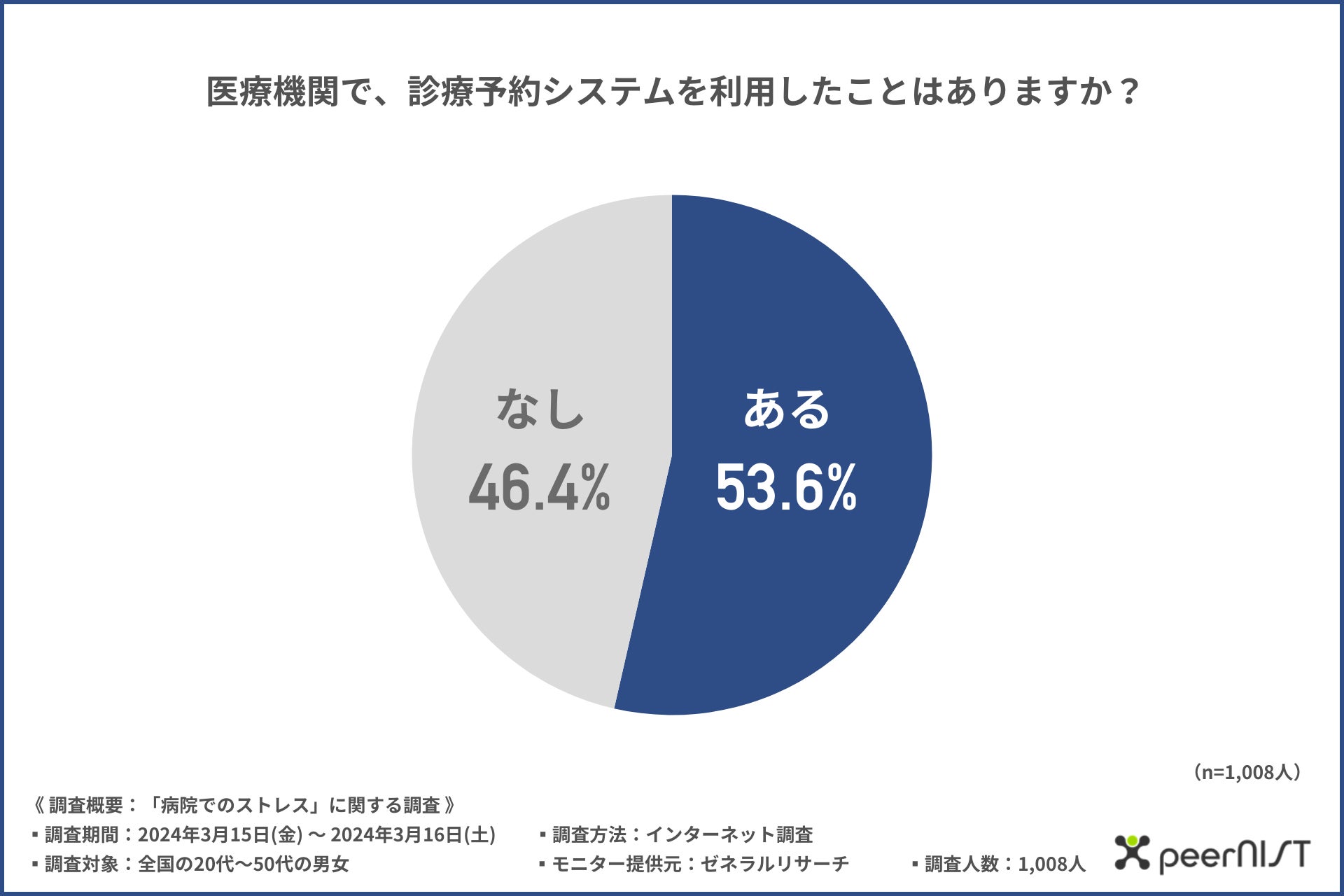 そこで今回、診療予約システム『QuiQ』(https://www.peernist.co.jp/products/quiq/)を運営する株式会社peerNISTは、全国の20代〜50代の男女を対象に、「病院でのストレス」に関する調査を実施しました。
