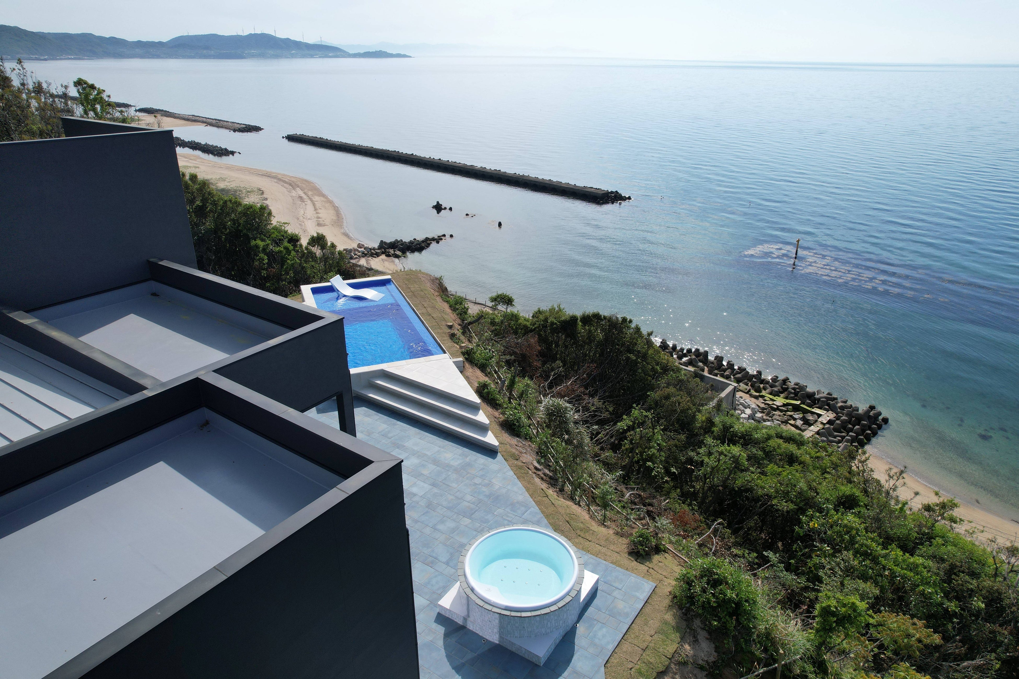 淡路島西海岸の貸別荘。全ての空間から瀬戸内を一望できるインフィニティープールとジャグジー付きリゾートヴィラが4月27日開業