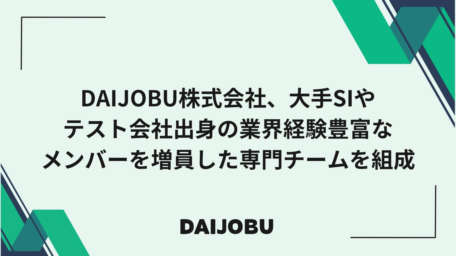 このたび、DAIJOBU株式会社は、大手SIやテスト会社出身、Web3プロダクト開発経験の豊富なメンバーを増員した専門チームを組成し、エンタープライズへの対応強化、さらなる高品質なサービスを迅速に供給できるようになりました。