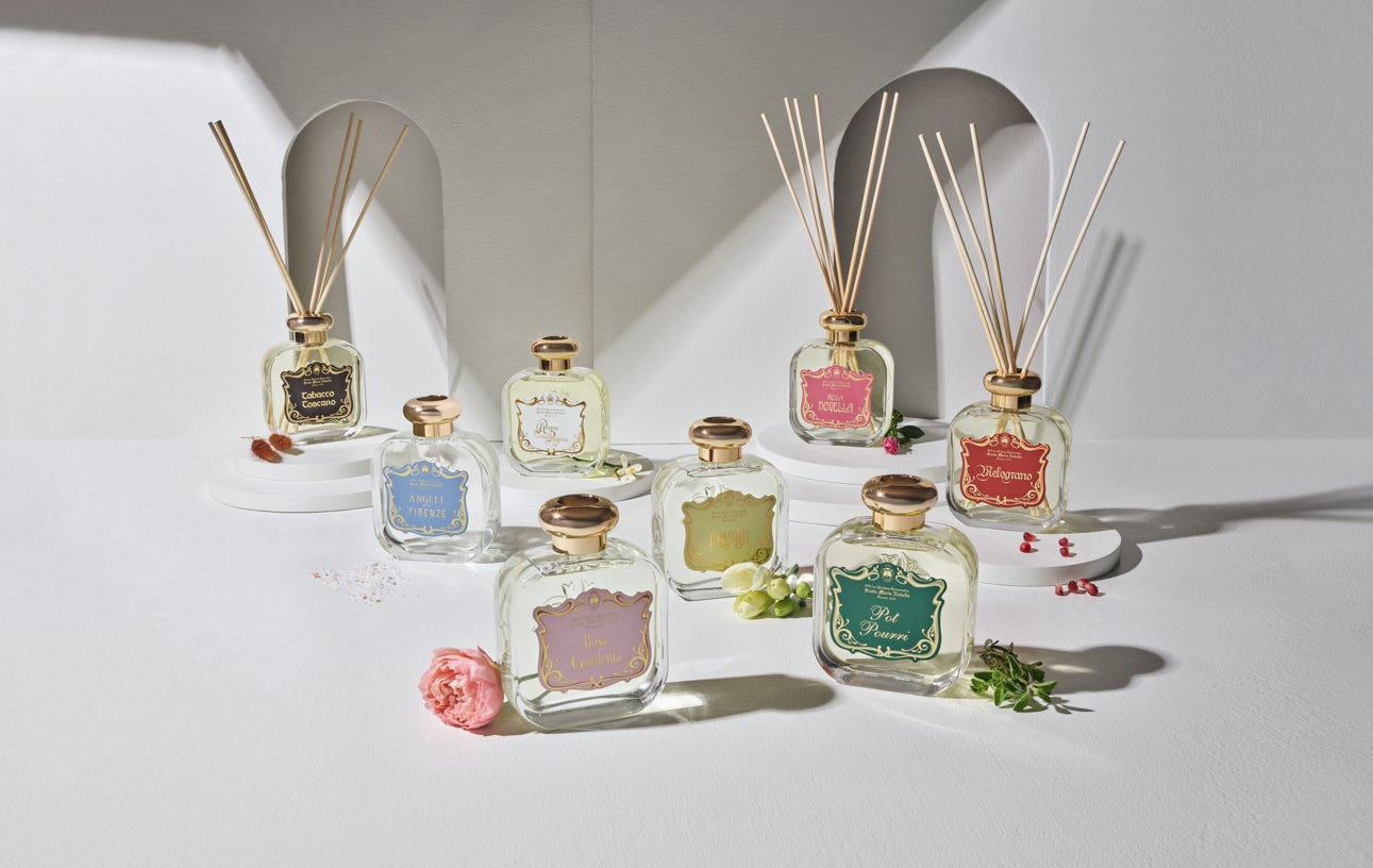1221年の設立以来イタリア・フィレンツェとともに歴史を歩んできたサンタ・マリア・ノヴェッラ。その800年を超える伝統を紡ぐアイコニックな香り8種を厳選し、オーデコロンやボディケアアイテムを展開する「Firenze 1221 エディション」に今回ディフューザーのコレクションが加わりました。ルネサンス発祥の地としても知られるフィレンツェの人々は、音楽や美術だけではなく、食事や服装、そして香りなど、生活の中の五感全てを通じて心身を豊かにする暮らしの芸術を築いてきました。その精神を現代まで継承するサンタ・マリア・ノヴェッラの洗練された香りがお部屋を包み込みます。